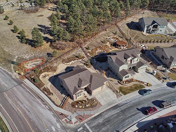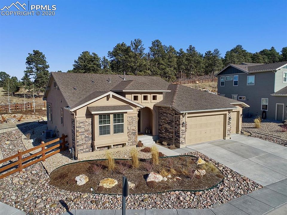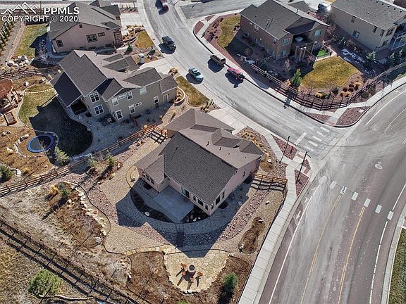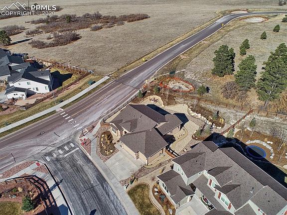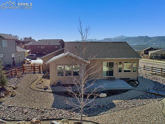 Stunning is the first word that will come to mind when you see this home. Award winning Classic Hillspire floorplan. Views of the Air Force Academy and the front range mountains from the main level office, dining area and phenomenal views from the backyard. Watch the sun set and be in awe! Custom colored hardwood flooring on the main level and custom colored concrete in the basement. Kitchen has Stainless Steel appliances; GE Profile range oven, microwave, dishwasher and a Samsung fridge with Food Showcase. This home has tons of natural light! Main level office with french doors. Plenty of storage. Sit by the gas fireplace and enjoy the panoramic views of Pikes Peak and Mt. Herman. So many extras...wrought iron railing, covered front entry, high ceilings in the basement and more! This neighborhood boasts walking paths, hiking trails, parks/playgrounds, close to I-25, Hwy 83, shopping centers. What are you waiting for? The only piece that is missing is you!