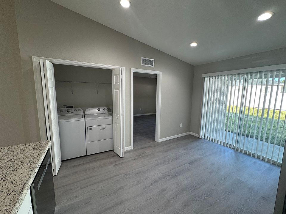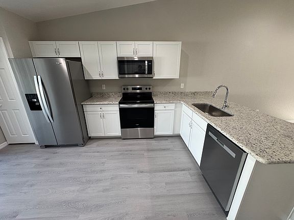 Brand new, beautiful duplex unit with all new stainless steel appliances and washer and dryer in laundry room, granite countertops in kitchen and bathrooms, ceiling fans in living room and each bedroom, and vaulted ceilings. Parking in front for two vehicles for this duplex unit. New blinds throughout the home. Nice sod in front and back, and large backyard fenced in by white vinyl fence separating it from other duplex unit's backyard. Pet friendly. Great neighborhood. Tenants pay first and last month's rent, plus one month's security deposit, plus deposit for any pets at $250/pet. Tenants pay water and power, plus trash and WIFI. Tenants maintain landscaping. No smoking.