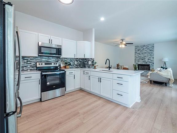 This gorgeous 2-story Olathe home is Amazing! Completely Remodeled, with New Everything, this home is just Perfect. This home features lots of windows and natural light! The Kitchen has New White cabinetry, Quartz Counters and Luxury Vinyl Tile throughout. An Open Concept kitchen living area, with Beautiful Fireplace, Large Island, and Formal Dining Area! Master Bedroom has Sitting Area, Large Walk-in Closet, and Master Bathroom with Double Vanity, soak-in tub and tiled shower. Spacious bedrooms with brand new paint, and flooring, and fully remodeled bathrooms complete this 2nd level. Basement is finished, with a 5th bedroom, a living area and a bathroom. Large fenced in backyard features stamped concrete patio and corner lot. Fantastic opportunity to be in the great Olathe school district in and amazing neighborhood!