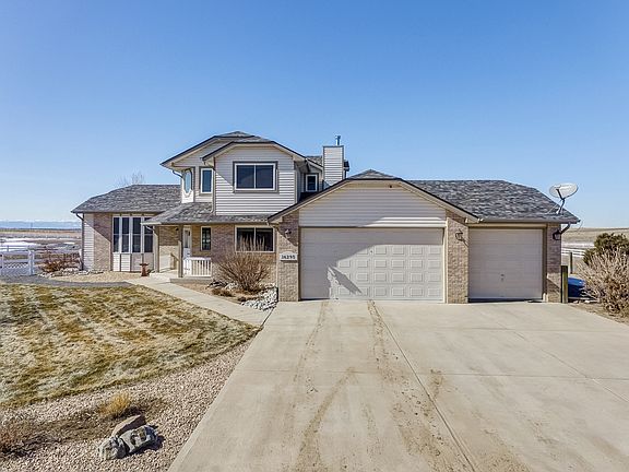 Beautiful 5-bedroom horse property with over 3800 total square feet located on 3.5 acres with unobstructed panoramic mountain views. Features include Big kitchen with double ovens, lots of cabinets and counter space, center island, ceramic tile floors, and stainless-steel appliances, living room with cozy gas fireplace and heated wood grain porcelain tile floors, formal dining room with coved ceiling and custom chair rail. The large main floor master suite has amazing mountain views including Long's Peak, huge His and Her's walk-in closets, wood grain porcelain tile floor, newer light fixtures, and 5-piece en suite bath with big soaking tub. Other features include a brand-new roof, fresh interior paint, newer double pane windows, newer furnace, 50-gallon water heater, central air conditioning, and there is a whole house fan. The partially finished Garden Level basement has rough in plumbing to easily add a 4th bathroom, there is a craft room with cabinets, counter-top space, and a refrigerator and a small bedroom/office, plenty of room to add another bedroom, media room, and family room. Also featured is a covered back porch, 3 outbuildings including huge 24x36 3 car garage/workshop with 220V, a bird/chicken pen, a goat/small animal pen, plus a large utility shed, attached 3 car garage, and a horse trail directly adjacent to the property. All kitchen appliances are included plus a free 1-year Buyer's Home Warranty and much much more! ***BE SURE TO CHECK OUT THE 3D VIRTUAL WALK-THROUGH***