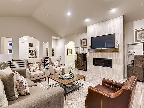 Ready in March. Ashton ranch plan with 3 car garage on corner lot in Sanctuary Pointe. 5 bedroom, 4.5 bath home with finished basement. Kitchen includes designer white cabinets with 42" uppers and crown molding. Quartz counters and stainless appliances. 5 pc. master bath featuring expanded shower and dual heads! Formal extended dining room. Includes 2 gas fireplaces and air conditioning. Wood shelving in closets. Finished basement includes 1ft. taller ceilings, wet bar, plus 3 bedrooms, one of which is the junior suite, 2.5 bathrooms and recreation room. Exterior includes patio with gas line.