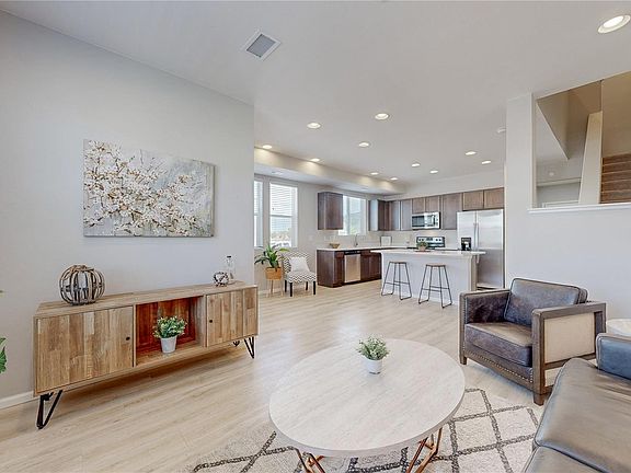 Fabulous end unit townhouse! The one you have been waiting for in the esteemed Avion at Denver community! This 3 bed, 3 bath townhome was completed in 2020. It offers an open floor plan, large kitchen w/ an island, quartz countertops, stainless steel appliances and a very spacious pantry. The luxury vinyl plank floors and abundant natural light in the living area create an inviting ambiance. Being an end unit means more windows for natural light and added privacy with only one shared wall. While the attached two-car garage and main floor bathroom provide convenience and functionality.