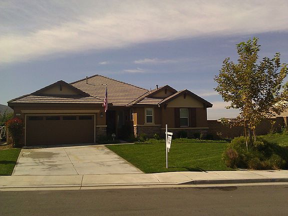 Beautiful almost custom home in new Sierra Estates community. Home is located on Hillsmont Lane off of Mc Allister. 4 bedroom, 2.5 bath, wood plantation shutters, laminate wood flooring in upstairs 400+ sqft loft. Stunning views of mountains and hills. No neighbors behind property. Fruit trees and full landscaping in backyard. Custom patio cover and decorative cement patio. Ceramic tile throughout bathrooms, kitchen, and laundry. Sink in laundry room. Ceiling fans in every room. Granite countertops and stainless steel appliances. Too much to list. Asking 2600.00 per month on 2 yr lease 2650.00 on 1 yr lease $2000 deposit Pets negotiable Call 951.500.4758 or 951.436.6734 to make an offer.