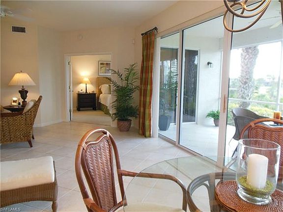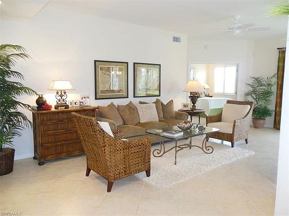 This ground level 2 bedroom PLUS DEN condo in Crown Colony has a beautiful western view over the conservation land and golf course. A little peak of lake too! The location is very private and serene. There is a large screened and tiled lanai for birdwatching and sunsets. The interior is a realtor's dream. PRACTICALLY NEW!! Beautifully cared for with neutral decor throughout. Tile floors throughout the open areas and carpet in the bedrooms (new in master). The kitchen features a breakfast bar, pantry and corian countertops. Plantation shutters throughout. Also important to note besides a 2 car garage, this condo has a NEW A/C system and hot water heater ( 2015). BRAND NEW Stainless Steel Appliances. Crown Colony is a 24 hour guard gate community with optional golf and social memberships.(THERE IS A MEMBERSHIP THAT COULD BE TRANSFERRED WITH THIS CONDO BUT NOT REQUIRED $25,000 value) The whole community is beautifully set on a golf course, where everybody has a nice view. Your condo fees include the x-1 cable package with super hi speed internet, water, sewer, pest control, community pool, spa, tennis and fitness center. Located close to the beaches, shopping, dining.