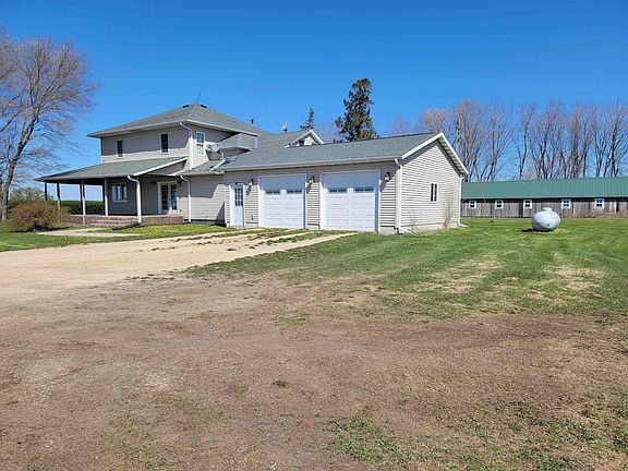 Here is your opportunity to own your own peaceful countryside acreage! Check out this 4 bedroom, 2 bathroom home located on 2.6 acres. The main floor features an updated kitchen with ample cupboard space. The kitchen opens up to a large formal dining room with beautiful hardwood flooring and french doors leading out to the wrap around covered porch. The cozy living room has lots of windows to bring in the natural light and opens up to a den that could be used for an extra sitting area, toy room, or office space. There is one bedroom and a bathroom with a walk-in shower also on the main floor. Upstairs you will find a beautiful full bathroom with a jetted tub, walk-in tiled shower, and double sinks. Three more bedrooms and an additional smaller room for your office or storage space also on the upper level. The main level features solid oak doors and trim with 9 foot ceilings. Full unfinished basement with laundry and plenty of space for all of your extra storage needs. Insulated attached 2 stall garage is ready for heat and could make a great workshop. You will love your stamped concrete wrap around covered porch that is over 600 square feet and allows you to enjoy many viewpoints of the countryside! This is the perfect spot to end your busy day relaxing with your favorite beverage while enjoying the breathtaking sunsets! This property has established trees, landscaping, and a garden. Plenty of space to entertain family and friends. Also on the property is a remodeled 24 x 50 pole shed with two overhead electric doors for all of your toys and two other smaller buildings. All appliances to stay! AC unit, fridge, dishwasher, water filtration system, UV water system, and paint all done within the last year. This home is move in ready and is waiting for your family to start making memories in. Call today to set up your private viewing!