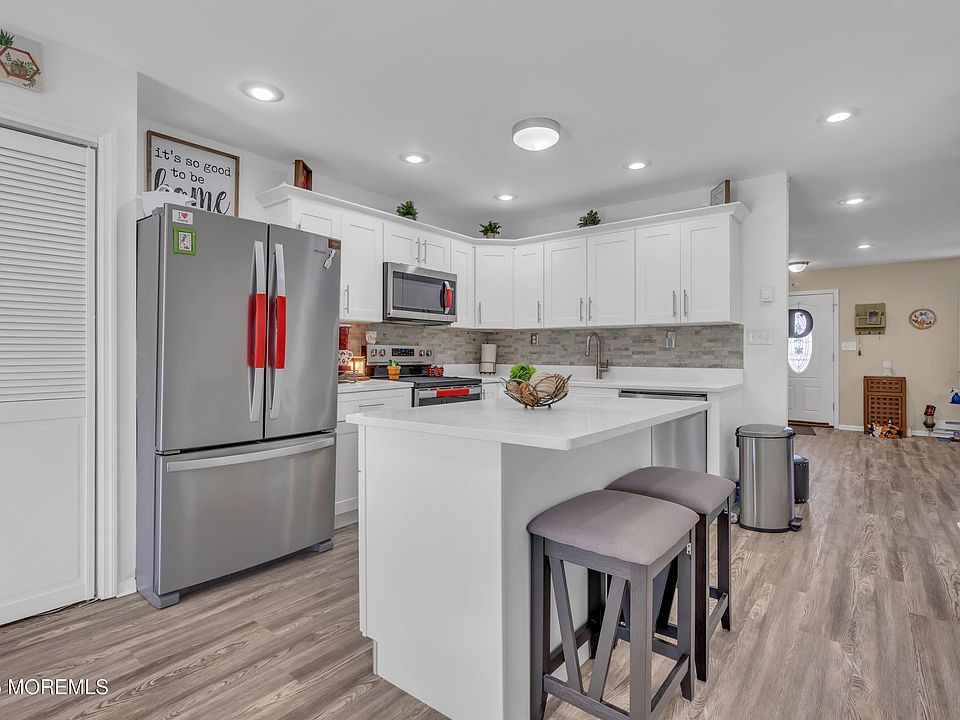 You're sure to love this converted two-bedroom home in desirable Villages 55+ community - with a gorgeous modern kitchen! Fully updated - sparkling stainless appliances, granite counters, white cabinets and backsplash with convenient island - this kitchen is a cook's dream. Use your bright sunroom for dining or relaxing - or both! This versatile space features sliding doors that open up to your sunny patio facing a walking path. Two spacious bedrooms, a pretty bathroom, a large living room and durable, luxury vinyl floors complete this comfortable and inviting home. New AC. Move-in ready! Convenient to shopping, restaurants and transportation. Residents enjoy access to the pool, clubhouse, tennis and more.