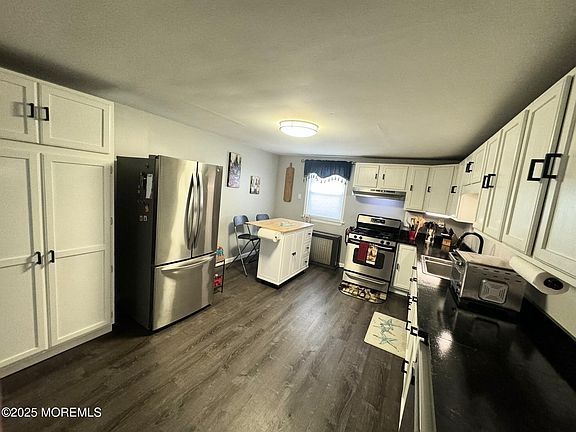 Welcome to this cozy 3 bed 2 bath in the heart of Keyport. Blocks away from the beach, Veteran's Park, Cedar St Park, and Keyport's downtown area. This freshly updated home awaits its new owner(s). The downstairs boasts the primary master suite with a full ensuite bathroom. Additional dining/living space on the first floor is currently being used as a bedroom for a mobility-limited person. Second full bath and laundry room are on the first floor. Upstairs encompasses 2 bedrooms. Backyard is an oversized lot with a detached 2-car garage and parking for 7+ cars. Updates include new flooring throughout, downstairs air conditioners (x2), water heater, and more! Home is being sold strictly ''AS IS''.