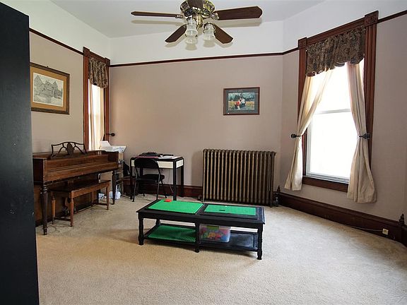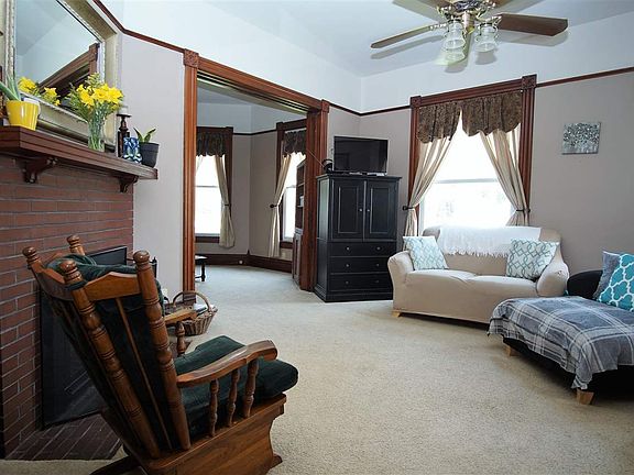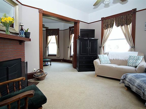 In this home you can find loads of charm and character located in the historical part of downtown Lincoln, Illinois. Character has been maintained in the form of unpainted woodwork with lots of detail, brass door knobs, original hardwood floors, pocket doors, high ceilings, and foyer with stained glass detail. The living room just off the foyer hosts a fully functioning and cozy gas fireplace for those chilly winter nights. Through the pocket doors is a family room/toy room. The main bathroom is just off the family room and is host to a large whirlpool bathtub. Another half bath can be found on the main floor as well. A large dining room with pantry is just off the kitchen. Kitchen is fully updated with quality white cabinetry and solid surface countertops. Stainless steel appliances all remain for the new owner. Two ample sized bedrooms finish out the main floor. Upstairs is another large bedroom with walk in closet. Outside you will find a landscaped yard and large deck great for entertaining. Extra large two car garage with alley access is a great place to keep your cars out of the weather and provides lots of storage as well. Interior has been freshly painted. Don't miss out on this charming home and make it a must see!