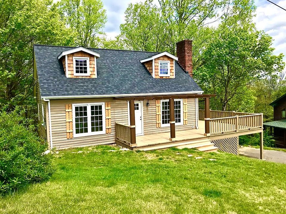 Check out our new pictures! WHAT A RARE OCCURRENCE, a home available in Chalet High, Fancy Gap VA. Available homes with this Piedmont view are almost extinct. This Mountain vacation resort is one of the most desired in the area. The community is located just off of the Blue Ridge Parkway. This beautifully furnished home is newly renovated. There is a new shingle roof, upgrades to the decking and a new pergola, insulated tilt windows, and cedar shake siding on the dormers, new tongue and groove wood ceilings, bead board walls, fresh paint and new lighting. It features hardwood flooring on most of the main floor, with new water resistant assembled vinyl in the newly renovated kitchen, that includes a gorgeous tile backsplash, and butcher block counter tops. Nothing spared on this top notch kitchen. Stainless appliances, gas range,