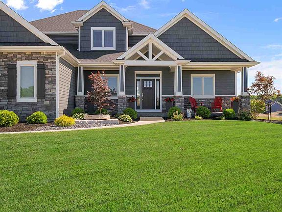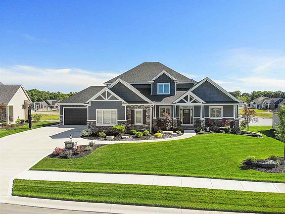 Immaculate custom built home in Northwest Ft. Wayne's desirable Whisper Rock! Pride of ownership is evident immediately upon arrival with custom landscaping, stamped concrete porch, and elegant pillars! As you enter the 5,000+ sq.ft. one-owner home you will appreciate the beautiful hardwood floors, built-in bench, and sliding barn door leading to your own private office! Continue to the spacious great room, complete with a stunning coffered ceiling, stone fireplace, built-ins, and custom windows that provide panoramic views of your premier pond lot! The chef's kitchen offers Kitchen Aid stainless steel appliances, custom soft-close cabinets, granite counters, spacious island, and stunning custom backsplash! Off the kitchen you will enjoy your morning cup of coffee in the three season room complete with tile floors and Eze-Breeze windows! The master suite offers double tray ceilings with crown molding, granite counters with double sinks, custom tile shower, and huge walk-in closet! Upstairs you will find 3 spacious bedrooms, a full bath, and elevated loft perfect for a play area or theatre space. Head downstairs to the fully finished walk-out basement to find a 5th bedroom, full bathroom, custom wet bar with granite, 2nd three season room with hot tub, and theatre room with a 4k projector and tray ceilings! Additional features include a 4 car garage, irrigation system, security system, whole house audio wiring, and zoned heating & cooling!