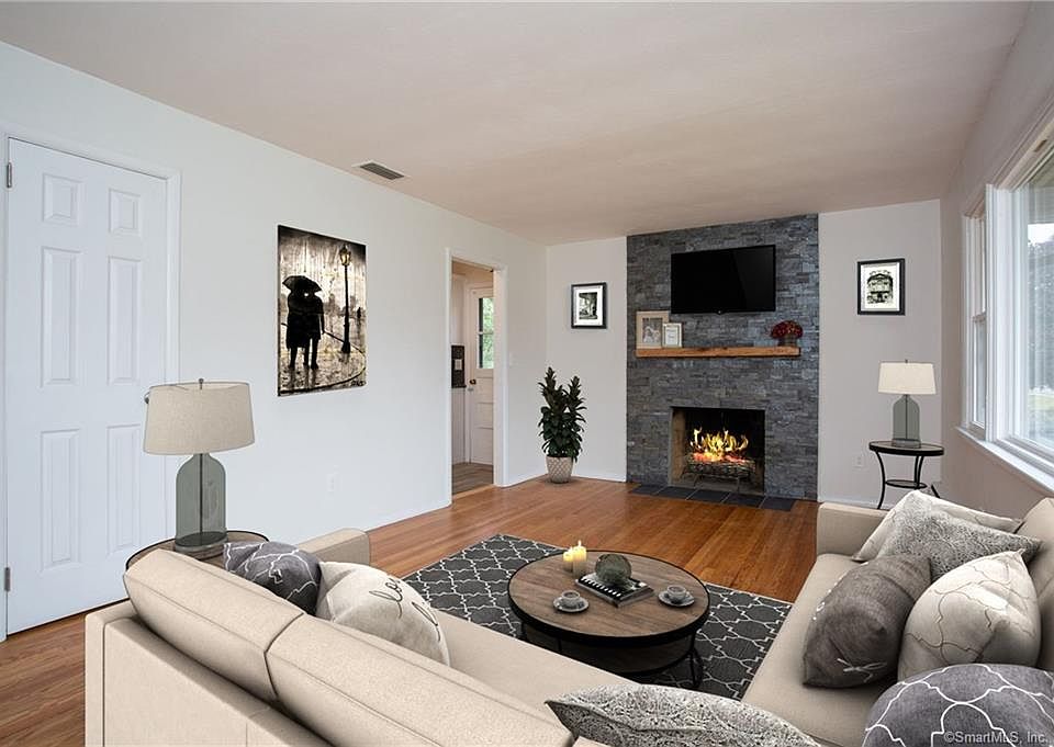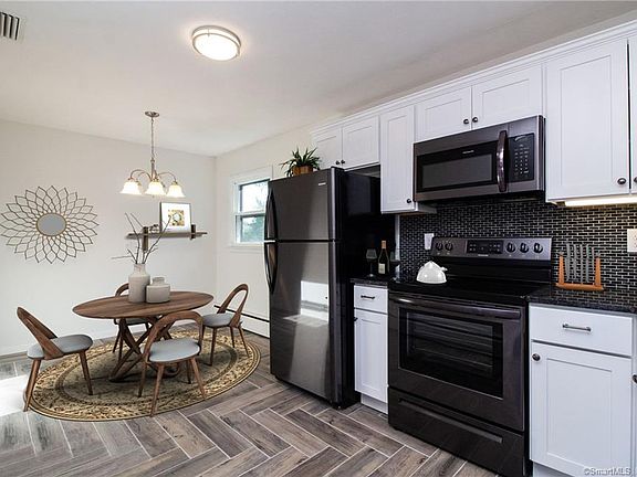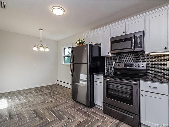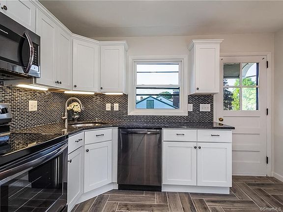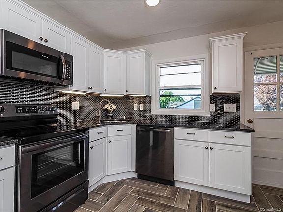 Absolutely Breathtaking 1100 sq ft Ranch! Completely remodeled inside with beautiful upgrades. A Stunning Dream home eat-in kitchen.NEWGranite, Stainless Steele appliances,Herringbone designed tile floor, and self closing cabinets! Gorgeous hardwoods thru, gorgeous stone fireplace, with 2 completely remodeled tiled full baths. Lower level full bath has a convenient laundry hook up. Plenty of closets, storage areas, and XL garage thru home. All set on a beautiful 1/2 acre open lot Ideal for family/friend gatherings! * Close to Parks, Schools, Shopping, Ct. River, and major highways. Very sought after location in town. Welcoming offers now!!