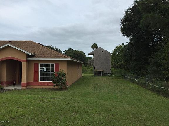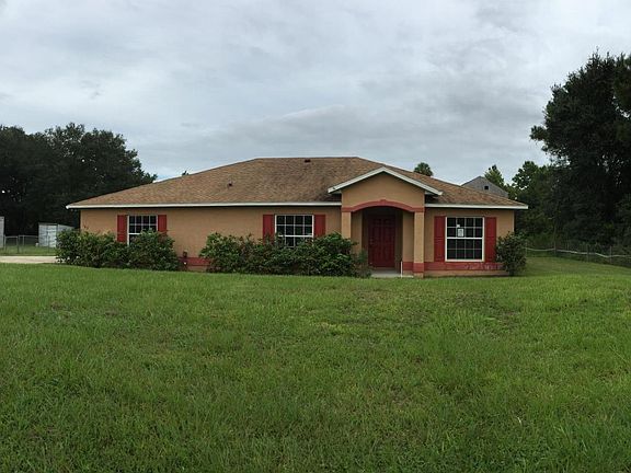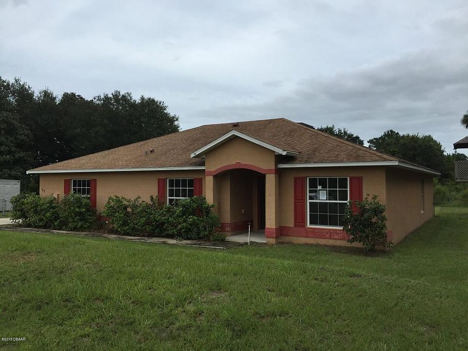 Want contemporary and stylish archetecture out in the country on a half acre of land? Enjoy the peace and quiet of Oak Hill living in your 2009 built, four bedroom, two bath, concrete block home with stucco cover. This home boasts 1902 square feet under air, a 361 square foot two car garage, a 44 square foot open front porch and 132 square foot back open porch. The inside has a great open floor plan with a large eat-in kitchen, living/dining combo with vaulted ceilings, a split bedroom plan, large master suite with private bath and enclosed Florida room for relaxing. A detached rear storage provides a home for all of the toys and a fully fenced lot provides a safe haven for the animals. AC and water were removed prior to foreclosure. To build this new would be almost twice the price!