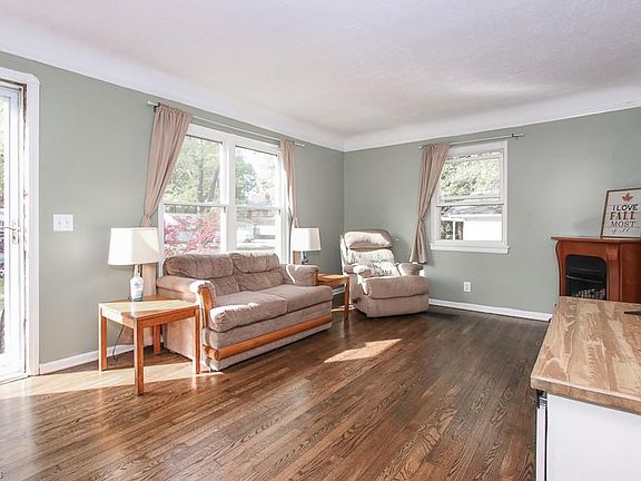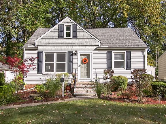 Picture perfect Cape Cod located just a few minutes from the lake. Wonderful curb appeal surrounds this home tucked away on a quiet street with a neighborhood park located at the end. Light and bright with beautiful refinished hardwood floors throughout the living room and first-floor bedrooms. The living room has newer front windows and a cozy gas fireplace to chase away the winter chill. The updated kitchen features great countertop space, ceramic tile flooring, and a tile backsplash. Tons of cabinet space with 2 side pantry cabinets and built-in bench seating. The bathroom has been updated with a tiled shower surround, vanity, mirror, lighting, ceramic flooring, and glass block window for privacy. New carpet was installed in the upstairs and freshly painted. The owner has converted attic space to a closet to make a generous-sized owner's suite that can even accommodate a king-sized bed! The basement features a large recreation/ family room with a gas fireplace, built-in shelving, laminate flooring, and glass block windows. Wonderful full bathroom with soaking tub is a relaxing retreat. The laundry room is super clean with tons of storage. Enjoy relaxing on the deck or sitting by the brick firepit. Perfect time of the year to enjoy a fire!