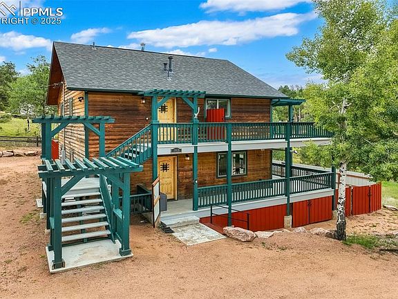 Privately situated with long-range views and an easy drive to town, this thoughtfully updated mountain home offers a warm, functional interior and an outdoor space that truly sets it apart. Inside, the main level features tongue-and-groove ceilings, wood floors, and a wood-burning stove that adds both charm and comfort. The open kitchen includes a butcher block island and connects easily to the main living space, creating a practical flow for daily living and hosting. The lower level includes a pellet stove, an additional living area, and direct access to the outdoors. Both bathrooms have been updated, and walkouts on both levels lead to two full decks with great views of the surrounding valley and mountains. But the real standout is the yard—rarely do you find an outdoor space this thoughtfully designed and well cared for. Framed by lifetime metal privacy fencing, the yard includes a hot tub, winding stone pathways, and a generous stone patio perfect for gathering. There’s a greenhouse for year-round growing, mature trees that offer shade and privacy, and a bonus storage shed tucked neatly out of sight. Whether you're gardening, relaxing in the hot tub, or hosting friends on the patio or decks, this outdoor space feels like your own private mountain retreat. A rare combination of comfort, character, and an exceptional lot—this home is ideal for those who value both indoor charm and truly special outdoor living.