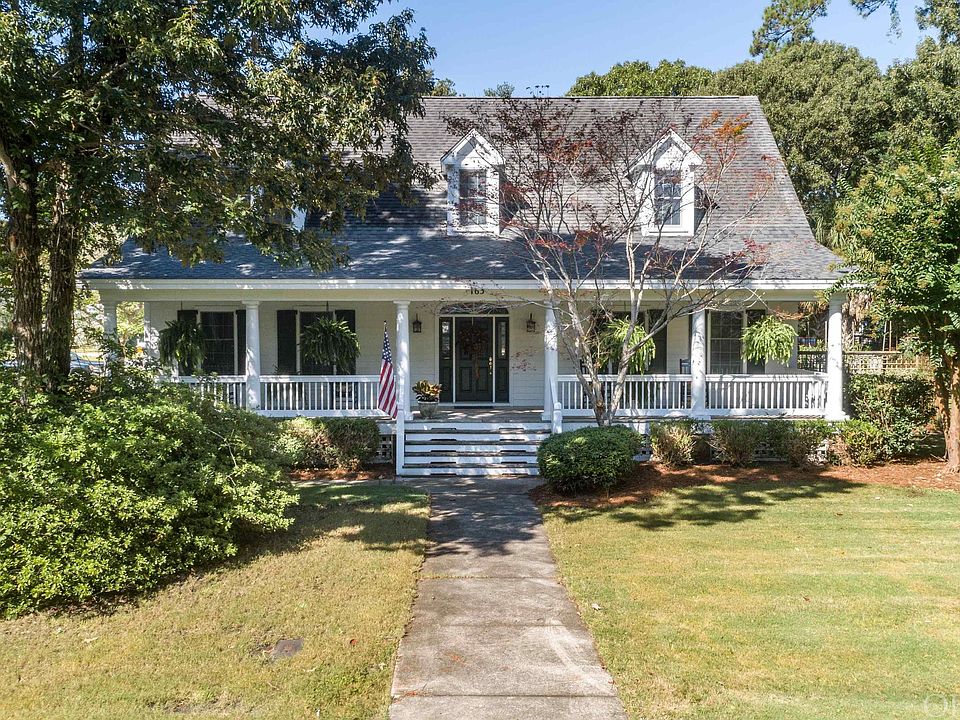 You will love this stunning Southern Living style home designed by architect William Poole. The property is located on the corner of Brakewood Road and Fearing Place with easy access to the garage or front door. The fenced yard and the meticulous landscaping offer captivating curb appeal. Yard maintenance is made a little easier with the irrigation system in place. The home has Andersen windows and custom working shutters, ideal for those OBX nor’easters. The kitchen was recently updated in 2020 with quartz countertops, a new sink, a microwave, and a range/oven. Keeping your new home clean is a breeze with a central vacuum and dustpan inlet in the kitchen. The detailed woodwork is evident throughout the home with two-piece crown molding and the use of wainscoting in the dining room. Various types of flooring, LVP in the living room and loft, tile in the foyer and kitchen, and hardwood in the dining room give the interior alluring, refreshing functional floor coverings that will stand the test of time, small kids' and man’s best friend. Most of the house has fresh paint giving rooms that bright, clean look we all desire. The home also features a gas HVAC downstairs and electric HVAC upstairs which will provide more dependability for any occasion. If you enjoy entertaining or quiet evenings, the home has intercom speakers throughout for your entertainment. This is prime property, an awesome location, and many, many extras. This is a must-see if you are ready to purchase yours forever home on Roanoke Island.