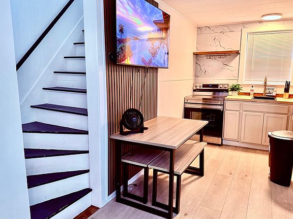 Fenced in backyardBlackout blindsLarge smart tvStainless steel appliances