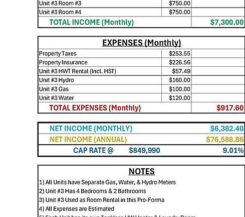 9% CAPRATE Estimated! Legal 3-Unit Triplex Vacant Multi-Residential Property. The Best You Have Ever Seen. Easy $7,300+/month Rental Income. Minimal Expenses Under $1,000/m. Huge 3,123 Sqft Living Space. 3 Gas Meters. 3 Hydro Meters. 3 Water Meters. Triple Wide Driveway 3 Parking Spots . 3 Laundry Rooms, 3 Tankless Hot Water Heaters. 3 Kitchens. Never Lived in After Reno's. Start Fresh. Over $400k+ Spent in 2023 & 2024. City Completed Occupancy Permit. 3 ESA Certificates Completed. Total 8 Bedrooms & 5 Full Bathrooms. Unit 1 (2 Bed 2 Bath), Unit 2 (2 Bed 1 Bath), Unit 3 (4 Bed 2 Bath). 5 Year Warranty on All Kitchen & Appliances. 5 Year Warranty on All 3 Laundry Sets. Fully Fenced. Carpet Free. No Inside Common Areas. Basement Set Up to Rent as Room Rental. 3 Bathtubs & 2 Double Glass Stand-Up Showers. Steel Roof. Almost Everything You See, Touch, Feel is New (Flooring, Painting, Tiling, Kitchen Cabinets & Counters, Bathrooms, Drywall, Exhaust Fans, Baseboards & Trims, Light Fixtures, Potlights, Most Doors, Most Handles). New Major Works (Electrical, Plumbing, Water Lines, Plumbing, Structural Supporting, Insulation Top to Bottom). New 1" Water Service Line to the Property. New Outdoor Concrete. New Basement Entrance. New Custom Built Shed. Newly Landscaped Backyard With Huge Interlocking Patio Stone Area. New Almost Everything. Rent with Confidence to the Tenants of Your Choice and Make Positive Cashflow. Live in One Unit, Househack, Rent The Other Two Units And Live For Free. Walking Distance to Bus Stop. Worry Free, Headache Free, New & Inspected & Warranties Will Relieve You From Tons of Stress & Create a More Enjoyable Seamless & Hands-Off Passive Cashflow Positive Experience. Don't Miss Out on Adding This High Quality, Presentable, & Affordable Building to Your Portfolio, or as a Start to Your Portfolio, to Help You Set Your Self Up For Success.