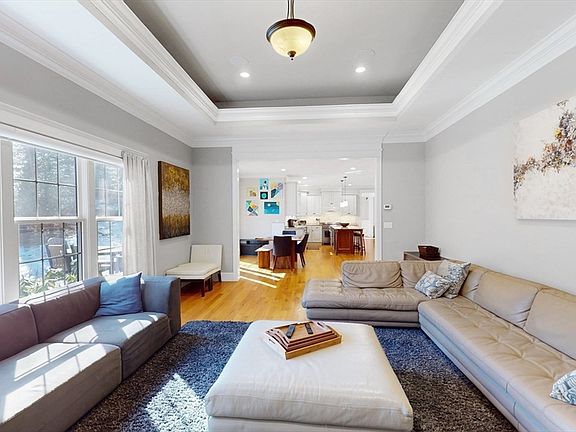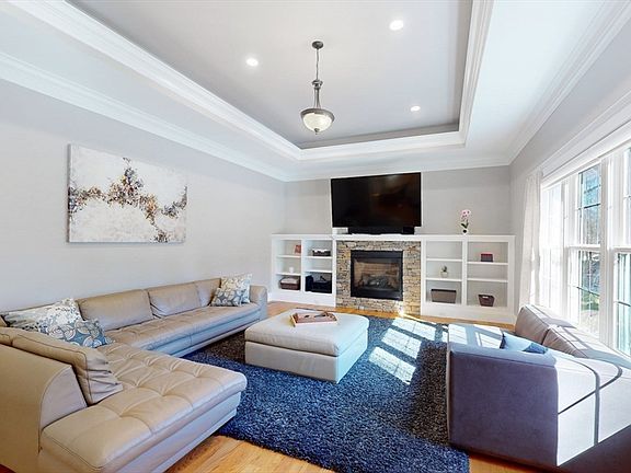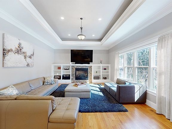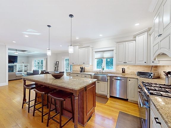 Indulge in the opulence of this extraordinary Colonial residence, constructed in 2014 and nestled within the coveted Estabrook School District. A grand farmer's porch beckons you into a lavish foyer and a chef's kitchen with antique white cabinets, an island, and top-notch appliances. This seamlessly transitions into the family room, where a 12-ft trey ceiling, a gas fireplace, bespoke built-ins, and a surround sound system create an atmosphere of refined elegance. The 1st floor office doubles as a guest suite with a full bath. The main bedroom suite is a sanctuary, featuring a sitting area, walk-in closet, and a serene bath. The finished, sky-lit 3rd floor offers a bonus room, a fifth bedroom, and another full bath. Outside, a maintenance-free rear deck provides a vantage point to appreciate the spacious, level backyard. Beautiful landscaping, an irrigation system, and the masonry fieldstone walls complete the exterior. All of this is within strolling distance to Willard's Woods.