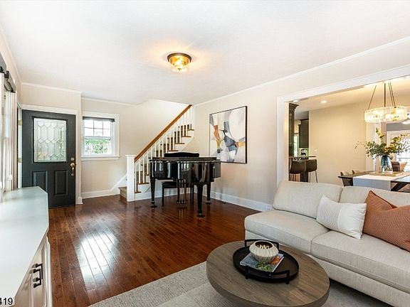 Beautifully renovated and thoughtfully expanded, this 4 bedroom, 3.5 bath Side Hall Colonial blends timeless Glen Ridge charm with modern living. A 2.5 story addition enhances the home's style and functionality, beginning with a welcoming entry that opens to a spacious livingrm (1st of 2 gas fpl's), diningrm and office/gym. The diningrm connects directly to the open kitchen, designed for today's lifestyle with stainless steel appliances, breakfast bar seating, abundant storage, and a custom bar w/2 refrigerated beverage drawers perfect for entertaining. The kitchen and dining space flow seamlessly into the sun-filled familyrm with 2nd gas fpl and custom built-ins. Glass doors open to a deck and patio overlooking the fully fenced-in backyard, an ideal setting for year round gatherings, dining,and play. Upstairs, the primary suite provides a private retreat with a modern full bath and generous built-in custom closets, complemented by two addl bedrms and a hall bath. The 3rd fl offers a versatile bedrm and full bath, perfect for guests/home office/aupair. Hardwd floors and thoughtful updates highlight the warmth and character of this home while maximizing comfort and livability. Located on a picturesque tree-lined street just steps to the state-of-the-art park with playground and field. For commuters, the town shuttle to the NYC train stops at the corner! With nationally rated top performing schools, this home offers the best of suburban tranquility with unmatched convenience.