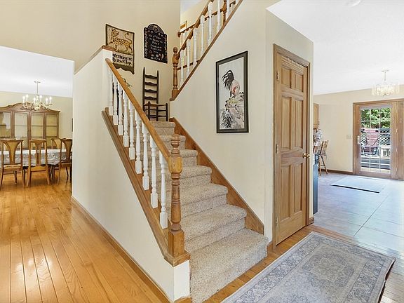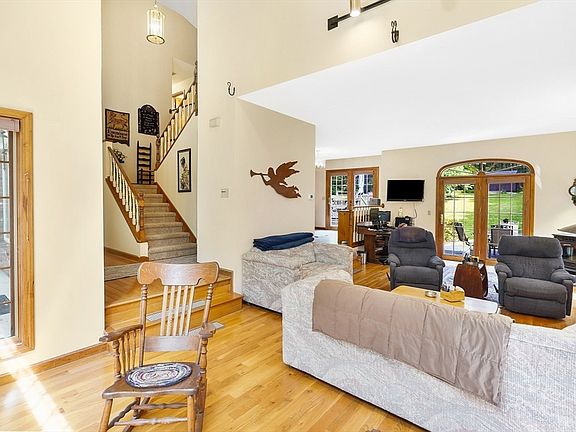 This custom-designed contemporary features 4 beds, 3 baths & a versatile floor plan, ideal for entertaining guests or in-law arrangements. The open concept kitchen has plentiful storage & counter space while the adjacent dining room offers beautiful hardwood floors & a large bay window. A two story foyer welcomes you into the den & cozy living room w/a wood burning fireplace & pellet stove. For those desiring one level living, there is a first floor bedroom & full bath. Head upstairs to find an owners suite w/a full bath & walk in closet as well as two additional bedrooms & a full shared bath. The storage space above the garage offers endless possibilities. Set on nearly 2 acres, you’ll enjoy serene and picturesque outdoor space w/a multi-tier deck, pool & incredible gardens. This home also provides a large unfinished basement for additional living space or storage, an attached two car garage & shed. With quick access to town, the highway & local amenities, this home checks every box!