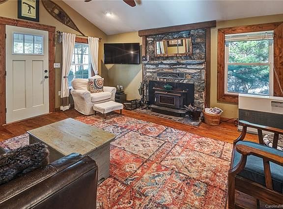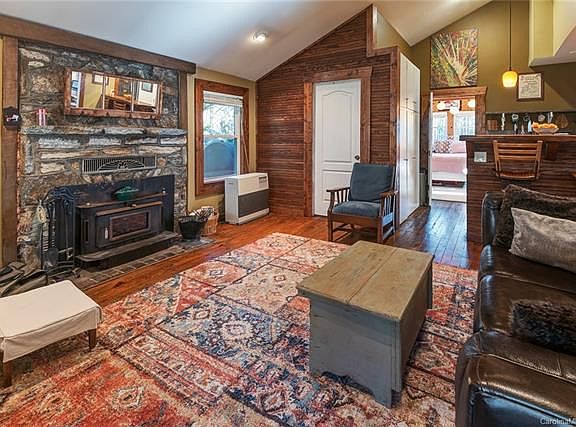 Enjoy the privacy and charm of this lovely home, while being less than 30 minutes from downtown Asheville. You feel the charm as soon as you pull up with beautiful hardscaping throughout the property, thoughtful landscaping, raised beds for gardening, and a koi pond. Walk right into the cozy living room with wood burning stove from the slate covered rocking chair front porch. The open concept is great for entertaining with the kitchen viewing right into the living room. This home features two bedrooms, both with vaulted ceilings, each on their own level for privacy. The master bedroom level has its own private bathroom and deck! Off of the back of the home is an additional deck, great for grilling and relaxing in the sun. The backyard features a fire pit and storage shed. The Florence Nature Preserve is right nearby and you're walking distance to Little Bear Wallow Falls hike & Wildcat Rock Trails. This would make a great short term rental or starter home at this price point!