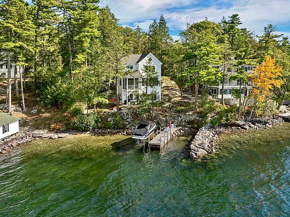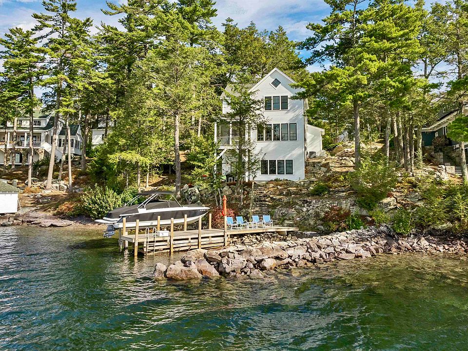 Discover a rare waterfront offering on Clark Point in Wolfeboro Bay—set within walking distance to the town center and storied embrace of “America’s Oldest Summer Resort.” With over 100 feet of pristine frontage, this West-facing property is perfectly positioned to capture sunsets that drift across Wolfeboro Bay, the Broads, and the distant mountain horizon. Engineered for both elegance and ease, the residence features deep-water docking with a classic crib dock, composite decking, and a newly rebuilt breakwater (2023) ensuring protected moorage. A swim ladder provides effortless lake access. Completed in 2019 by Carroll County Construction and artfully envisioned by Wentworth Style LLC, the home blends timeless craftsmanship with modern refinement. Bespoke windows frame sweeping lake vistas, while interiors showcase 9’ ceilings, custom cabinetry, Fisher & Paykel appliances, and radiant heat in the primary bath. Thoughtful details abound: a screened porch for summer evenings, a lower-level kitchenette, tailored built-ins on every floor, and gas fireplaces for year-round warmth. Outdoors, manicured perennial gardens, bluestone patios, and multiple seating areas invite lakeside living at its finest. Town water and sewer, central air, and a whole-house generator provide comfort and convenience. Offered fully furnished (with a few family heirloom exceptions), this turnkey retreat is an uncommon opportunity along one of Wolfeboro’s most coveted shorelines.