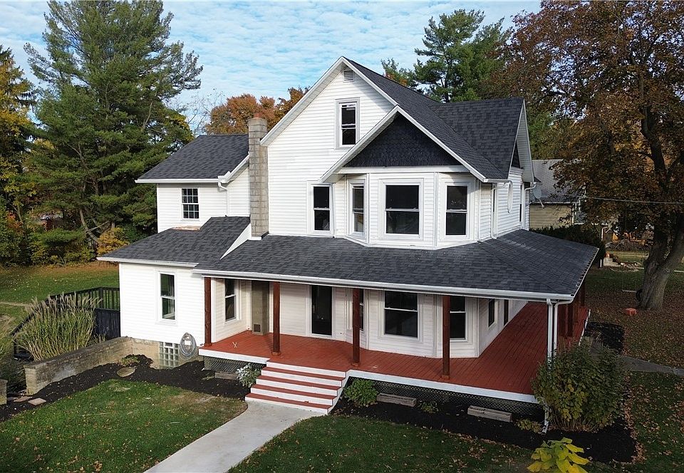 Need space? Check out this 4 or 5 bedroom, 2 bath, classic Victorian in New London! Located near the end of a quiet (soon to be repaved) dead end street, this charmer has a lot to offer after a recent renovation. Improvements include brand new kitchen and appliances, 2 brand new bathrooms, new windows throughout, brand new HVAC (furnace and A/C) updated electrical and plumbing, new gutters, new garage exterior and fresh landscaping! The home also features new flooring and paint throughout along with all new light fixtures and ceiling fans. The large, inviting, wrap-around front porch, along with the freshly stained back deck offer additional exterior amenities for enjoying the property. With all the work done, all that's left to do is move in and enjoy! Lot of bang for your buck with this one, don't wait, schedule a tour today!