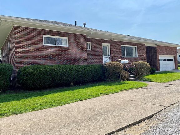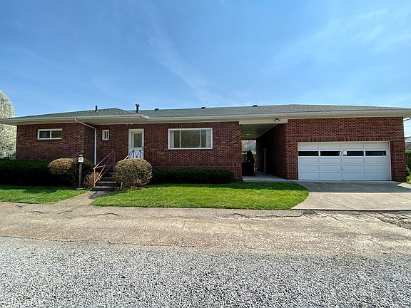 I love the beautiful view of Big Wheeling Creek directly across the street from this lovely brick home! With a beautiful grassy side yard, and a pleasant breezeway, this home has excellent outdoor space. It also boasts convenient one floor living. It has an updated kitchen and a newer Bath Fitter tub! Although listed as a 2 bedroom home, this home initially had 3 bedrooms; one room was made into the utility room and can easily be made back into a 3rd bedroom, if needed. Finally, this home has a spacious full basement and a two car garage with impressive high ceilings! Roof is 5 yrs old, water heater is 3 yrs old, and the furnace is only 2 yrs old! The stove in the basement does not stay!