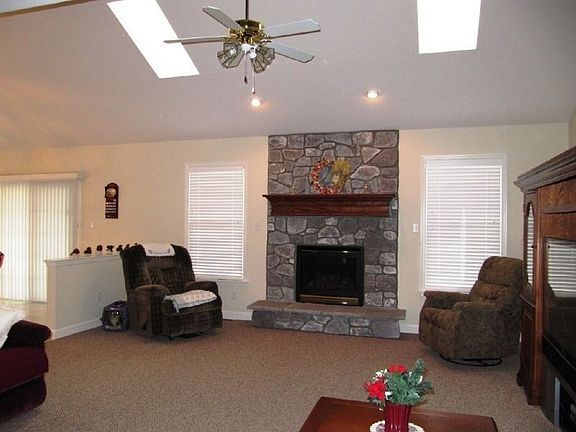 Situate On Corner Lot In Green Valley Estates 33-Handle Cherry Upgraded Kitchen With Vaulted Ceiling/Lighted Ceiling Fan And Tile Floor -Recessed Lighting -Corian Counter Tops And Corian Double Sink -Disposal -Refrigerator -Corner Pantry Closet With Access Panel To Crawl Space -Built-In Microwave -Crown Molding On Cabinets -Kitchen Aid Dishwasher Sunny Breakfast Nook With Vaulted Ceiling And Tile Floor -Picture Window -Built-In Cherry Corner Cabinet -Glass Sliding Doors With Access To Rear Yard Formal Open Dining Room With Oak Hardwood Flooring -Deep Tray Ceiling -Crown Molding -Picture Framing -Chair Rail Formal Living Room With Oak Hardwood Flooring And Bay-Shaped Front Windows (Possible 5th BR) -Crown Molding -Double Closet -Open To Entry Foyer -Ceiling Light Impressive Entry Foyer With Oak Hardwood Flooring And Multi-Level Ceiling -View Of Open Oak Staircase And Loft -Beautiful Front Door With Leaded Glass Spacious Family Room With Vaulted Ceiling/Lighted Ceiling Fan And 2 Skylights -Berber Carpet -View Of Open Loft -Recessed Lights -Gas Stone Fireplace With Oak Mantle And Raised Stone Hearth Main Hall With Oak Hardwood Flooring -Access To Basement -Spacious Coat Closet Beautiful Master Bedroom Suite With Gas Fireplace/Marble Surround And Private Bath -French Door Entry -Crown Molding -Lighted Ceiling Fan -His/Hers Walk-In Closets Master Bedroom Super Bath With Cherry Double Vanity And Whirlpool Tub With Tile Surround -Linen Closet -Glass Shower -Tile Floor Main Level Second Bedroom With Private Access To Full Hall Bath And Walk-In Closet -Lighted Ceiling Fan -Berber Carpet -Private Access Door To Driveway -Possible In-Law Suite/Office Main Hall Full Bath With Tile Floor And Cherry Vanity (5’ x 10’) Main Level Laundry/Mud Room With Tile Floor And Built-In Cupboards -Laundry Tub -Access To Garage Upper Level L-Shaped Loft with Views Of Family Room And Foyer (23’ x 10’ And 14’ x 9’) -Extended 10’ Overlook -3-Piece Cherry Wall Unit/Book Shelves Upper