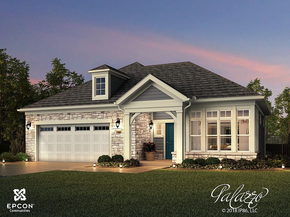 NEW BUILD! Single story Palazzo model with 2 bedrooms, 2 full bathrooms, 4 seasons room/flex space, open floor plan with tray ceilings, transom windows, universal design with wider hallways and doors, upgraded trim package, kitchen with Quartz counter tops, SS GE appliances, single bowl sink, ceramic tile backsplash, under cabinet & pendant lighting, luxury plank flooring in main living areas, premium carpet in pad in bedrooms, ceramic tile flooring in bathrooms and laundry, 36'' gas fireplace with mantel, private courtyard & 2.5 car attached garage with attic storage. Ready for quick possession!