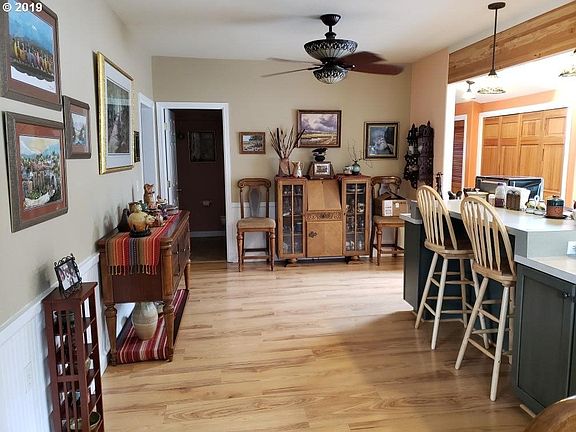Spacious home offers a private feel & beautiful mountain views, within walking distance to the North Umpqua River. Master bedroom w/walk in closet & bath w/vanity. UV filter system for well. Variety or fruit trees & flowers. Garden beds. Irrigation rights. RV parking. Property has a garage w/additional storage, barn/shop w/220v, also a large studio for the artist! Keep as garden or convert for your pets. Must see to appreciate!