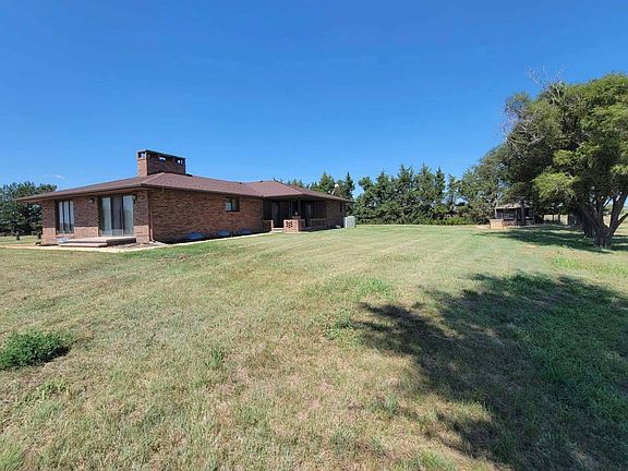 If you love country living , with quick east access to town, this may be the property for you. Property consists of 1.50 acre primary site, with ?8+- acres of dry land agricultural acres and 0.50+- acre native grass. The 1981 home has a total of 4,624 sq ft of living area (2,312 sq ft main floor and 2,312 sq ft full basement). * FORMAL ENTRY: Mirrored nook with double closets *KITCHEN: Custom oak cabinets Center island Triple sink with garage disposal Ornate wood design Dining area Doors to patio *LIVING: Carpeting Fireplace/ Wood burning with gas option Light panels on hearth Trim from First Baptist Church *MASTER BEDROOM: Large 24x20 room Carpeting, fan lite Wall of mirrored closets Niche with desk and cabinets Sliding door to front porch *MASTER BATHROOM ?: Carpeting Sunken tub Large vanity Ornate cabinets *SECOND BEDROOM: 3/8" wood wall panels Double mirrored closet Sliding doors to patio *SECOND BATHROOM: Sunken tub with glass tile surround Large vanity Carpeting *LAUNDRY: Washer and dryer hookups Laundry sink Generous cabinetry with dropped desk area Vinyl flooring Door to backyard *STAIRWAY: Unique ornate handcrafted oak Mirrored glass tiles *BASEMENT: Full 2,312 sq ft *FAMILY ROOM: Fireplace, wood burning with gas option *BEDROOM: Non conforming 31x14 Custom oak closets *LARGE BONUS ROOM: Pressure tank for well Sprinkler system controls *SHOWER: 9x3 Melamine with tile floor *HALF BATH: Toilet, large vanity & sink Closet foe furnace, water heater electric panel box *BASEMENT APARTMENT: Wall to wall sink cabinet Open Concept cabinets Washer/dryer hookups Half bath *LAND: 8+- acres dry land crop/ 5+- acres native grass/ 1.5 acre primary site *EXTERIOR: Brick Ranch-Style Home 1981 Double attached garage 24x36 Main well & Secondary well Fountain plumbed in front Three in-ground crosses with lighting Sprinkler system East patio Gazebo with hot tub Fire pit for trash Dog pen Septic tank and laterals Roof 10 years Evergreen windbreak Posts and chain around property and driveway PROPERTY TAXES: $2,777 LISTING PRICE $379,800