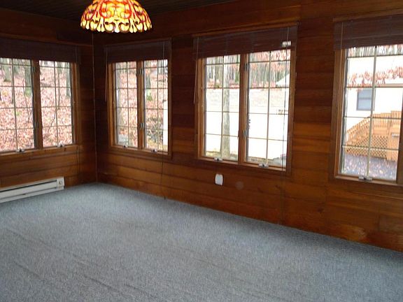 3 Bedroom 2 bath Cedar Chalet in move-in condition! Laminate floors, Andersen windows, Ceramic & propane heat, neutral colors throughout, most rooms recently repainted & recarpeted, cozy all wood sunroom, built-in garage, Oak kitchen with center island & all appliances, great room w/vaulted ceilings, wrap around deck. Lower level partially framed, flue for stove. Home Warranty included!