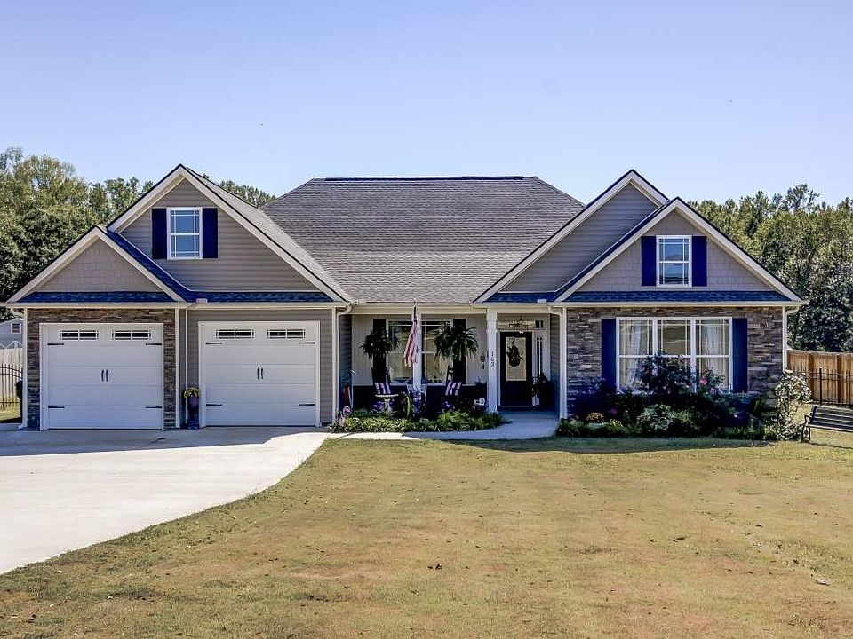 NO need to wait on a home to be built, this BEAUTIFUL 4-bedroom 2 bath craftsman style home offers it all! As you first walk into this beautiful home the first thing you see is a STACKED STONE FIREPLACE with archways on either side, double trey octagon ceilings, beautiful HARDWOOD floors, and endless amounts of natural light. Walk through the archway to your LARGE EAT-IN kitchen with STAINLESS STEEL appliances, GRANITE counter tops, and huge KITCHEN ISLAND with breakfast bar. The large master suit offers DUAL WALK- IN CLOSETS, a huge MASTER BATH with DUAL vanities, shower and JETTED TUB. The large laundry room is complete with a BUILT-IN desk. On the opposite side of the home you will find 2 other large bedrooms and a second full bath, the 4th bedroom that is currently being used as a dining room boasts gorgeous FRENCH DOORS! Walk out the back of the home to a 12x12 screened porch and fully FENCED backyard. The 30-foot pool has a large wrap-around DECK and adorable pergola. Did I mention there is NO HOA? This gorgeous home is the PERFECT place to entertain all year round!