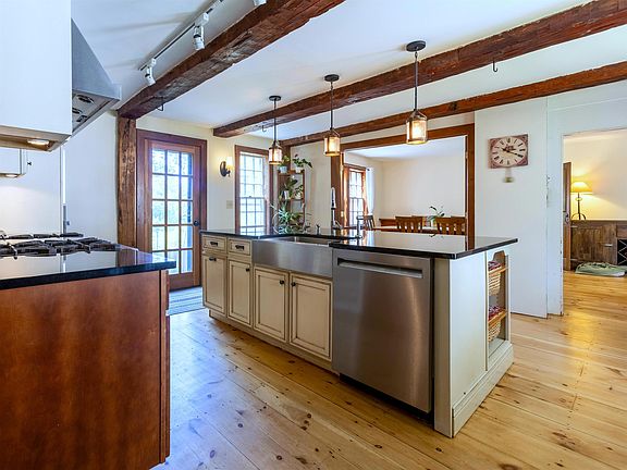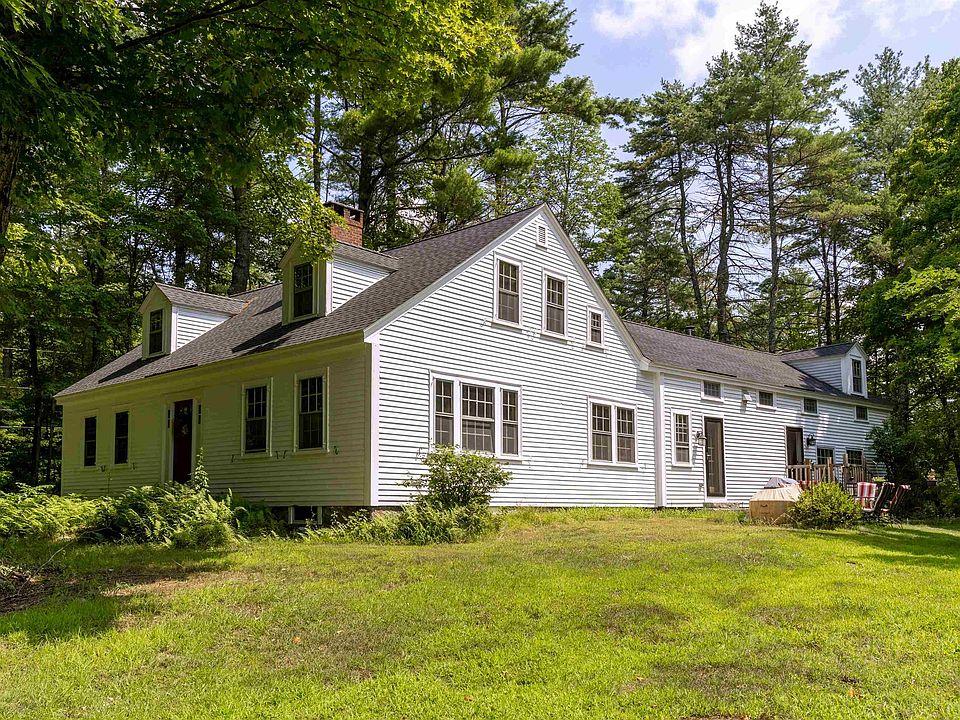Welcome home to this beautiful Hancock, NH post and beam antique cape. Sited on 65 conserved acres with stonewalls and fabulous view of Mt Monadnock. This lovely 3-4 bedroom home is complete with a large stepdown family room with built in bookcases and pellet stove. Enjoy the gleaming wide pine floors that lead to the wonderful kitchen complete with cherry cabinets, huge center island with sink and dishwasher, 6 burner Wolf gas stovetop, convection wall oven and microwave. There is even a walk in pantry. Plenty of work space on the lovely granite counters. French doors lead you to a large dining room that would be perfect for entertaining and large gatherings. Head on in to the living room with wood stove and built in bookcases. Nice easy living with a sizable first floor primary bedroom suite, which features a three quarter bath and huge walk in closet with laundry. The main stairway takes you to the second floor with two nicely sized bedrooms and a full bath. Walk in attic storage space too! There is a second stairway that takes you to a large unfinished area with expansion possibilities, and a full bath and additional bedroom/office. Some finish of this additional area would be needed. Second driveway at western end of house for additional parking, and is perfect for parking a boat or trailer. Plenty of privacy abounds on the 65 acres of land that is preserved in perpetuity. Town tax card lists the property as a 4 bedroom home. Open House Saturday August 10 from noon-2pm