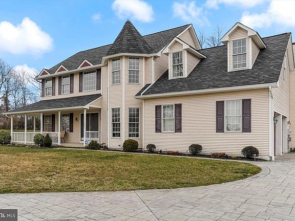 Welcome to 163 Fox Run - a lovely 4 bedroom, 2 full, 2 half bathroom home nestled on a private 1-acre lot in the quiet neighborhood of Creek Side Estates. When you pull in to this property, you will be met by a beautiful stamped concrete drive and walkway that leads to an inviting covered wraparound porch. Once you enter the home, you will be delighted by a welcoming two-story foyer with adjacent office and half bath. The first floor includes hardwood floors, large family room with vaulted ceilings and a kitchen complete with updated granite countertops and walkout to the scenic back patio that includes a built-in fire pit. Upstairs you will find a large primary suite that includes an additional flexible space that has endless possibilities and can be used as extra office, closet or workout area. Three additional bedrooms and a hall bathroom complete the second floor. Downstairs in the basement, you will be impressed by the finished area with a large family room, wet bar and half bath. Other features of this home include attached 2-car garage, new roof (2023) with transferrable home warranty and new HVAC system. Become only the second owner of this charming home and enjoy all the benefits of the area, including convenient proximity to Philadelphia, Wilmington, and New Jersey shore points.