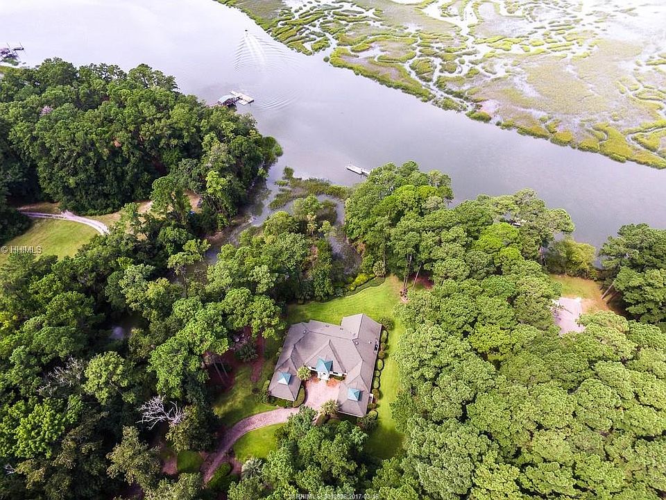 Nestled along the banks of the May River in the heart of Bluffton, SC's Lowcountry (between Hilton Head Island, SC and Savannah, GA) sits this beautiful 8+ acre estate. Built in '04, the main house features a luxurious master suite that includes a sitting room and spa-like master bath. Other features include 2 guest suites, private office, oversized screened porch, wine room, chef's kitchen, and separate entertainment room accessible via breezeway (currently used as a cigar bar). The property includes a separate guest cottage, 5 car garage, private adjacent island, and covered deep water dock.