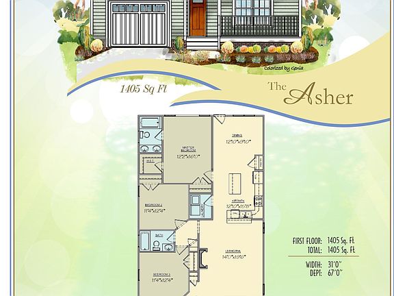 Country living with room to breathe—welcome to Asher Pointe. This brand new ranch-style home sits on a full acre and features the Asher floor plan, offering 3 bedrooms, 2 bathrooms, and approximately 1,405 square feet of well-designed space.Step inside to an open living area with a cozy gas log fireplace and a kitchen that checks all the boxes: granite island, stainless steel appliances, pantry, and a spacious breakfast bar. The dining area gets great natural light, perfect for everyday meals or casual gatherings.The primary suite includes a walk-in closet and dual vanity, while the two additional bedrooms are a great size and share a full bath. You'll also find a separate laundry room, a 1-car garage, and a covered front porch that adds to the home's curb appeal.Located just minutes from downtown Benson, with quick access to I-95 and I-40, plus nearby shopping at Smithfield Outlets. Easy commute to Raleigh, Fayetteville, and surrounding areas.This home is under construction and scheduled to be completed in June 2025. Still time to choose your colors and finishes! Photos are representative—final details may vary.