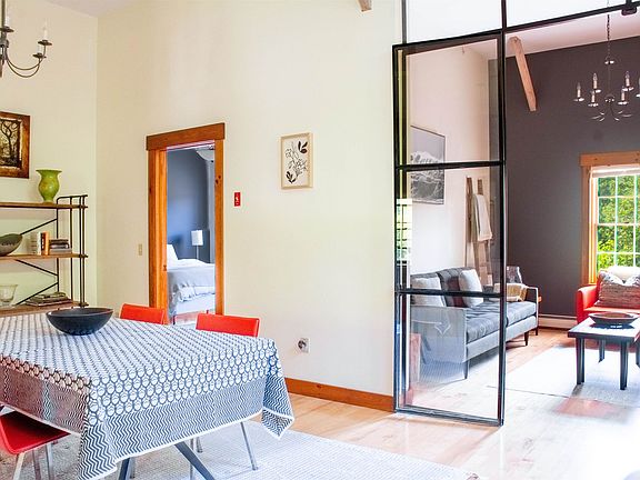 Fabulous Barndominium! This delightful Historic 1800's barn was tastefully converted into 4 beautiful condos. It is impeccably appointed with hardwood flooring, stylish glass partition, soaring 12 ft ceilings, exposed timber beams, and tons of light. The easy one floor living plan has its own private entrance, first floor ensuite primary bedroom with bath, open concept living, dining, granite countered kitchen as well as a large second bedroom and 2nd full bath. Combine this with covered parking and large on-site storage and you cannot go wrong. This gem is nestled in a delightful and easily accessible Hanover setting connected to conserved land, trail networks and parks while also only mere minutes to DHMC and Dartmouth College. You won't want to miss this rare Hanover opportunity. Showings start at the open house on Sat. July 29th 10-1