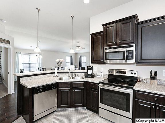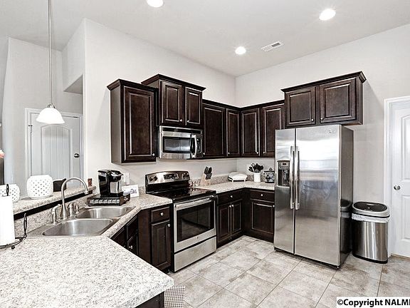 What a cute house! This is your home if you are looking for an open concept, newer style in a family-friendly neighborhood with Madison City schools at an affordable price. On a corner lot, with level, fenced back yard & covered patio, there is plenty of room for kids & pets. A welcoming foyer has high ceilings & hardwood floors. Take a look at the beautiful kitchen with stainless appliances, tile floors, breakfast bar & a view into the dining & family rooms. The spacious family room has hardwood flooring & plenty of natural light. Retreat to your master suite with master bath featuring double sinks, soaking tub & separate shower. Two other bedrooms and a full bath complete this great home.