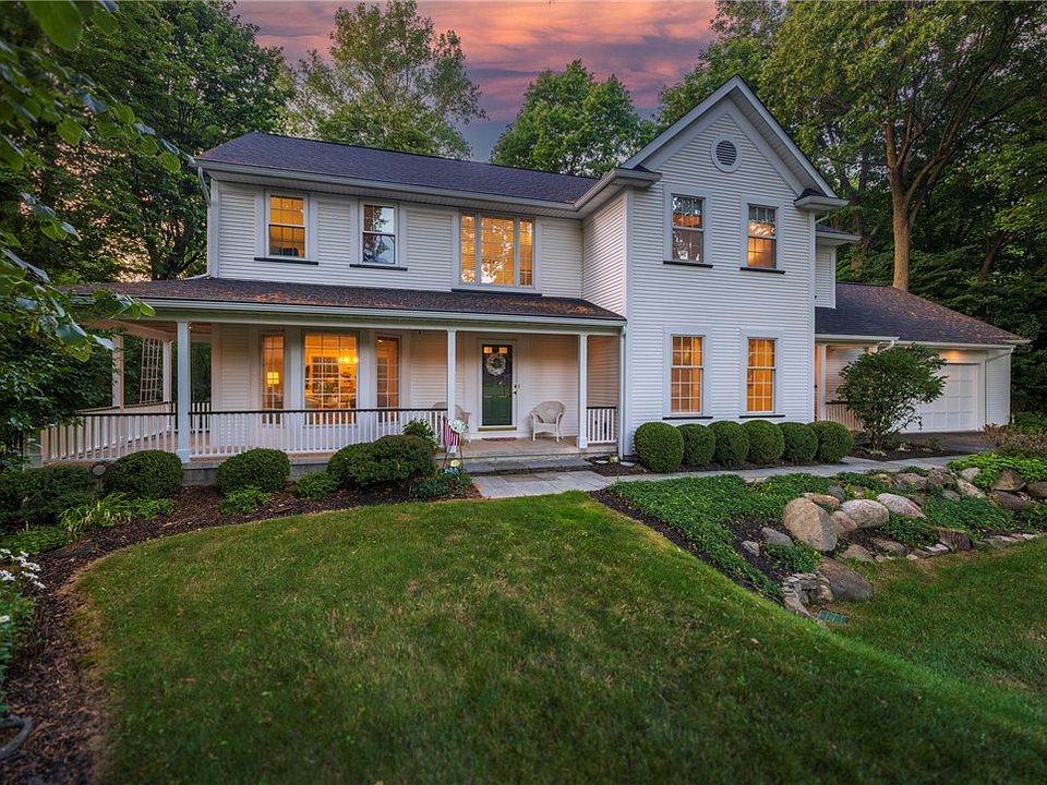 Located on one of Brighton's most coveted streets-welcome to 163 Heatherstone Lane! Handsomely perched on over half an acre, this traditional style home has a modern farmhouse exterior boasting a rare WRAP AROUND PORCH! With high end finishes and outstanding craftsmanship throughout, the home will impress even the most discriminating buyers. A fabulous chef's kitchen will delight you with a center island, granite counters, large pantry, double oven and tons of cabinets and prep space. Sliding glass doors lead to an elevated deck overlooking the backyard. Grand 2 story foyer, generous living room and entertainer's formal dining space, all with gorgeous oak flooring. A must have 1ST FLOOR OFFICE with built-ins and NEW carpet, it could also be an additional bedroom. Magnificent family room off the kitchen with brick front GAS FIREPLACE and access to the deck has been freshly painted and has NEW carpet. The open staircase leads to a full bathroom with double sized vanity, 4 spacious bedrooms with CALIFORNIA CLOSETS, including a primary suite with walk-in closet and spa inspired en-suite bathroom with JETTED SOAKING TUB. For even more living space-a huge, dry basement has 2 egress windows and is ready to be finished, and has a generator hook up. Don't miss the 2nd entrance and mudroom, 1ST FLOOR LAUNDRY and charming, convenient POWDER ROOM. Lots of fresh paint, updated lighting and plumbing. Curb appeal for days, Brighton Schools, Rain Bird Irrigation system, move in conditional and tons of extras! We can't wait to show you this one! NEW: Tear off roof 2023, dishwasher 2025. Open houses are Thursday, July 17th from 5-7 and Saturday, July 19 from 12-1:30. Delayed negotiation form on file. Please submit offers by 12 pm on Tuesday, July 22 and allow 24 hours for response.