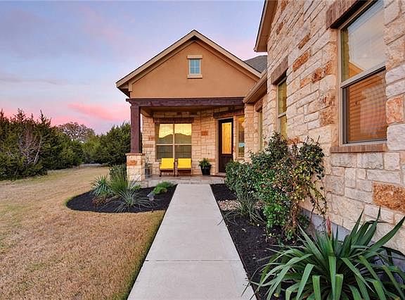 Stunning one story home on almost 1 acre. 4 bed/5 bath with 3601 sq. ft on cul-de-sac street. Upgraded like a model home. Large master suite w/ private patio and spa bath with dual entry shower, his & hers closets, soaking tub & laundry room access. White shaker kitchen w/ soft close drawers, pot-filler & open into family room. Each bedroom has private on-suite and large walk-in closets. Outdoor living area with built-in fireplace & grill. DSISD. Easy Access into Austin and Lakeway. Close to shopping.