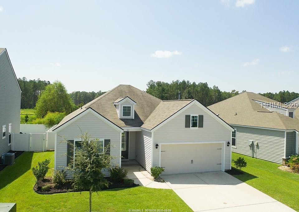 Move-in ready, open concept 3-bedroom, 2 bath single story home in Heritage at New Riverside. Tile floors in the living spaces are durable and on trend. Check out the expansive island in the well-designed kitchen with quartz countertops, backsplash, pendant lighting, and pantry. All kitchen appliances, washer, dryer, and TV in the great room are included. The outdoor living space is private with a covered porch/patio, and fenced backyard. Master Suite includes large walk-in closet, double vanity, and separate water closet. Freshly painted and ready for new owners to enjoy!