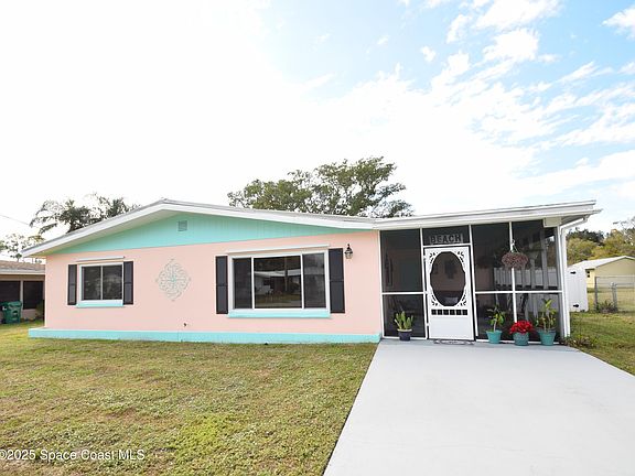 A Rare ''West Melbourne'' Opportunity to be the NEW OWNER of this adorable 2 bedroom 1 bath home with a welcoming front entry and screened in Car-port / patio! This lovingly maintained home has a newer Metal Roof, New Septic System, Fully Fenced (White Vinyl) yard, New exterior paint, Fresh coastal color interior paint. Newer double insulated windows, Updated Kitchen with White wooden cabinets with decorative handles, beautiful QUARTZ countertops, Stainless steel appliances complete the fully equipped kitchen and bonus breakfast bar! Nice and Open Dining area with new slider door to access to screened in back-porch and huge backyard. Enjoy two spacious bedrooms with nice closets and ceiling fans. The updated hall bathroom has a tub/shower with new toilet & sink. Other features: GE Electrical panel box, ceiling fan in family room, window over kitchen sink with views to backyard. Enjoy conveniences to shopping, schools, I-95 & only 7 miles to Brevard's beautiful Indialantic Beach. Metal roof: 2018, New Septic 2022, Water Heater- Whirlpool 2012, HVAC- Goodman 2016, Plumbing main supply line: Copper & CPVC- Main waste/vent material: Cast Iron & PVC- Double pane vinyl windows.