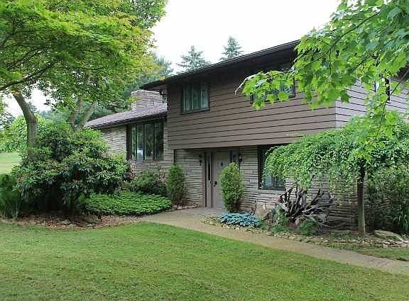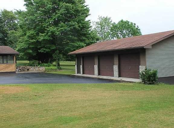 Great 3 bedroom house in country with 1.5 acres and great view. 2.5 bathrooms, whirlpool, double sided fireplace, vaulted ceilings, bay windows. HUGE 3 car garage! Screened in sun room, patio with small pond and picnic table. New roof, new gas line with new high efficiency furnace. Pool table, lots of storage in basement. Peaceful and quiet.