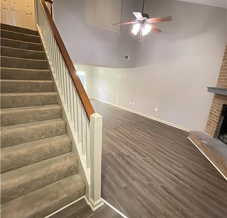 2BR, 1 1/2 Bath Townhome at Holland Park Townhomes in SouthSide. Beautifully Remodeled tile bath upstairs! French doors leading to a Large Privacy Fenced Courtyard with big shade tree! Wood Burning Fireplace with Brick Hearth! Freshly painted outside! Full size W/D hook-ups in large Laundry Room off Kitchen! All Electric Appliances! Half Bath Downstairs! Full Bath upstairs with Separate Vanity areas for each Bedroom! Small Pet considered