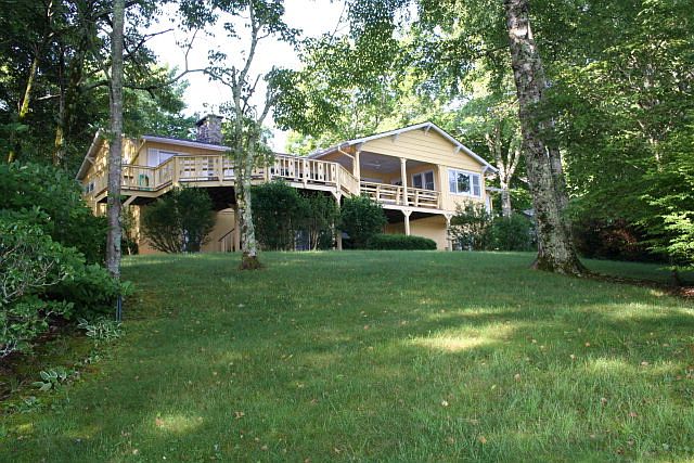 Point of View is located at the end of Lake Point Drive. This classic Lake Toxaway Cottage consists of 4 bedrooms, 3 baths, and 1 half bath. Roughly 3000 sq feet situated on one of Lake Toxaway's choicest lots with expansive views of Toxaway Mountain, Cold Mountain, and Panthertail Mountain not to mention a long range lake view. Stroll down the lush foliage on gentle topography to the waters edge which consists of roughly 258 feet of lakefront. There's no place lake home at 163 Lake Point Dr