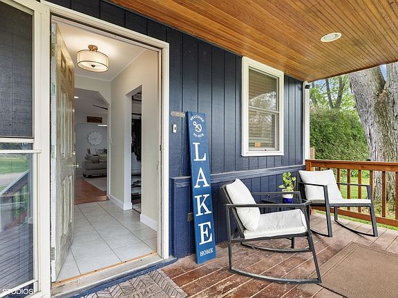 **OH has been cancelled for Sun 1/21**This charming cottage on Crystal Lake's north shore is just what you have been waiting for! You'll fall in love with the welcoming front porch, the updated and freshly painted interior with 10ft ceilings, and the awesome fenced in backyard with a brand new patio! The white kitchen is galley style and features a NEW fridge, microwave and dishwasher, a pantry and sliding door to the back. There is a spacious primary bedroom on the main level and an updated full bath with dual sink vanity and bathtub. The living room is open to the dining room and has laminate flooring, white wood blinds, recessed lighting and a ceiling fan. There's also a great den or mudroom in the front of the house, and laundry on the main level as well! Upstairs you'll find two bedrooms, one with a convenient half bath. Brand NEW torn off roof '23, new fixtures, newer gutters, windows, water heater, and front porch, some new cedar siding and fresh exterior paint, also newly insulated crawl space. Could make for an excellent investment property or Airbnb! Awesome location across from the private neighborhood beach on Crystal Lake! Enjoy the LAKE LIFE year round!!