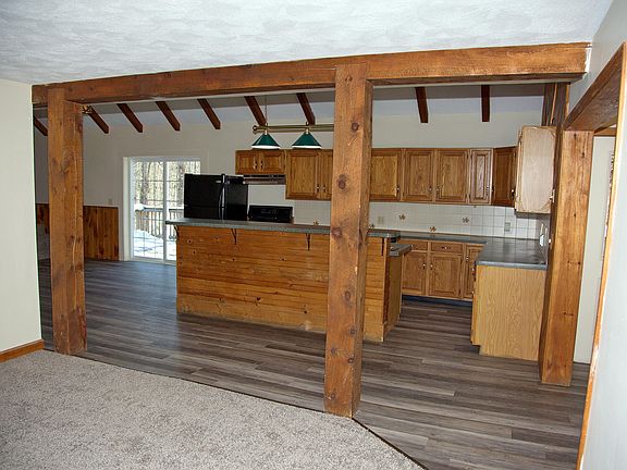 Charming home in a country setting. Open concept living room-kitchen. All new carpet, flooring and paint. Partially finished basement with two walkout doors. Basement has kitchenette for possible in-law apartment. Large rear deck with hot tub hookup. RV electrical and septic hookup on side driveway. New roof shingles in 2023. New furnace and water heater in 2021. New 4 bedroom leach field in 2015. Oversized garage with walkup 2nd floor and enclosed side shed, fenced in side yard. This is an incredible value in move-in condition.