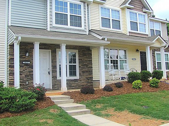 This charming 2 bedroom, 2.5 bath town home, with an inviting front porch and stone accents, is conveniently located off of NC-150 near shopping and dining! The foyer opens into the kitchen, which features a breakfast bar that overlooks the cozy living/ dining room combo. The kitchen includes a tile back-splash, all major appliances in black and plenty of cabinet space! The upstairs features the master bedroom with en suite bath. The additional bedroom, full bath and laundry complete the second floor. The living space extends outdoors through sliding glass doors that open into the screened-in patio. Enjoy nature comfortably! Trash service, lawn care, and access to the community pool are included in the price of rent! Pets conditional. Limited to one pet under 30 lbs. Non Refundable Pet Fee and Pet Rent determined by Pet Screening results. Like it, love it, gotta have it? **security deposit will be the equivalent of a minimum of one month's rent, but up to two month's rent equivalent may be required**